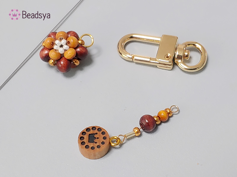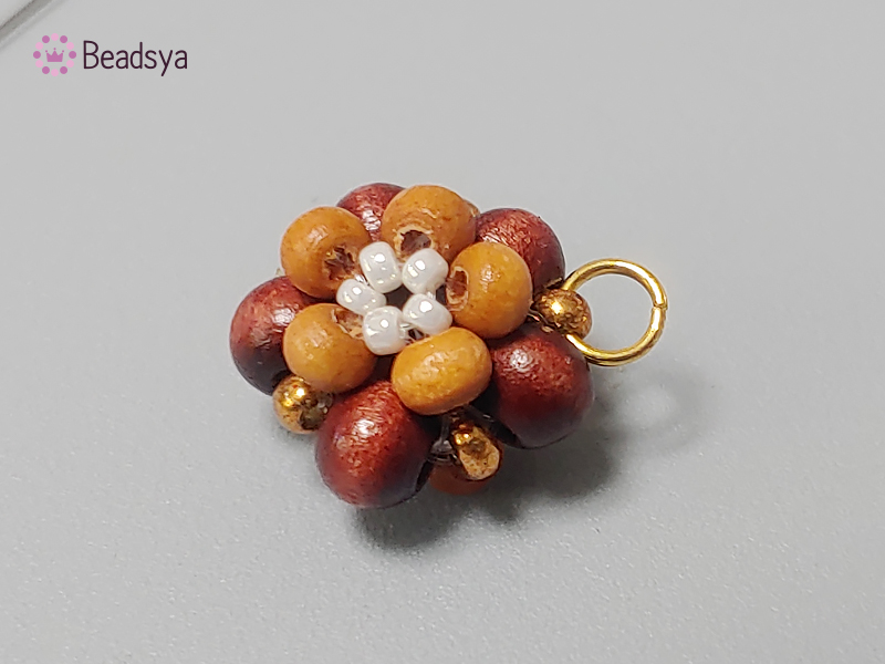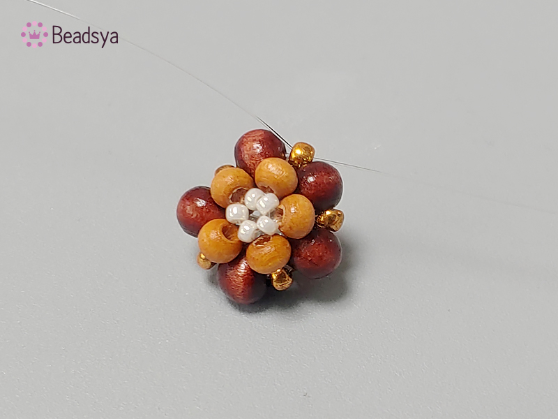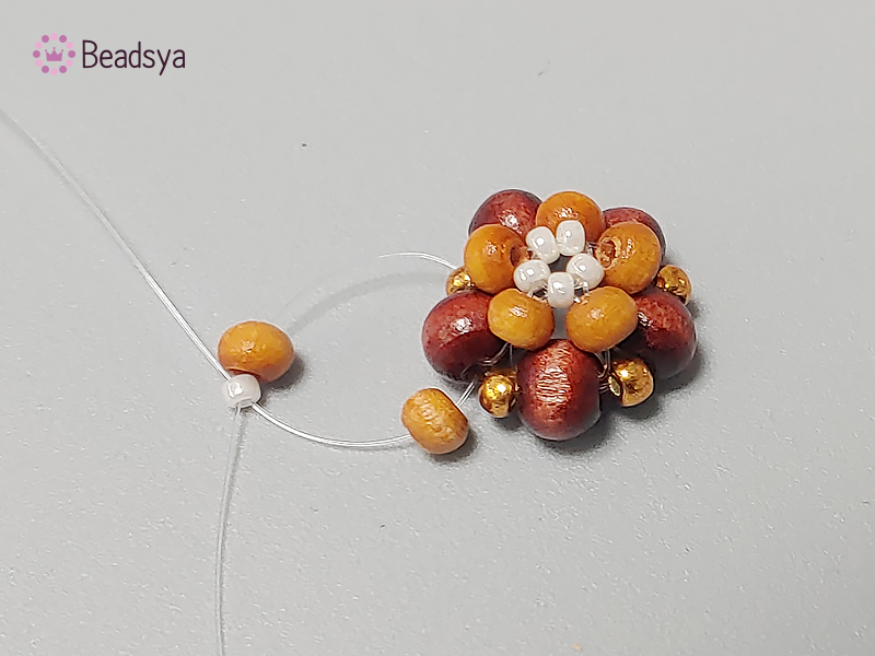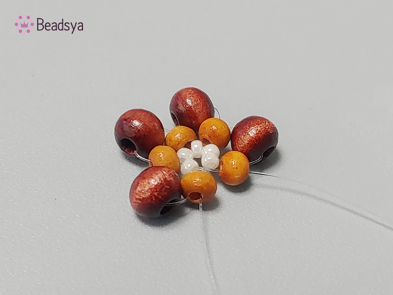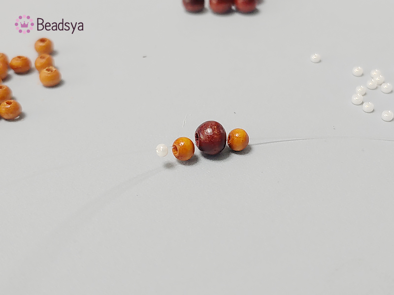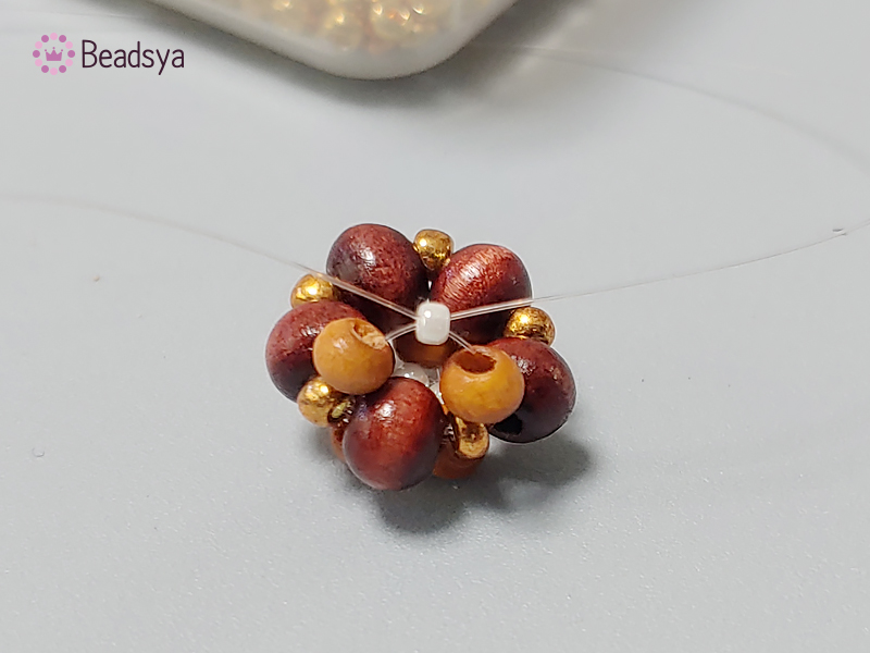 큰 우드비즈 4개, 작은 우드비즈 5개, 시드비즈4개가 되는 시점에 시드비즈를 하나 더 추가해볼께요.