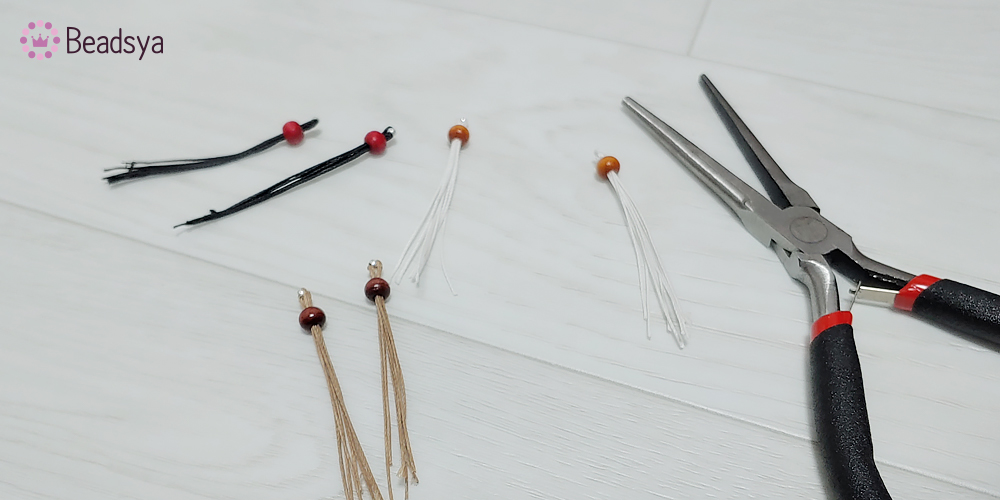 보시면 아시겠지만 왁스실을 같은 비율로 잘라 6mm 우드볼에 꿰서 다시 뽑았습니다.