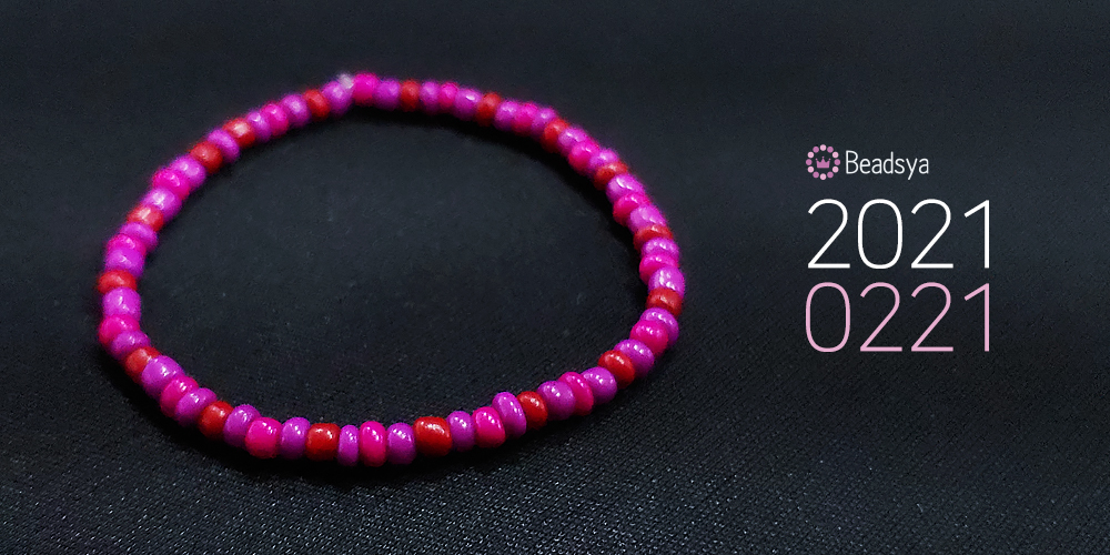 정확하진 않지만.. 레드+퍼플+핫핑크 조합으로 색교차해 꿰었습니다~