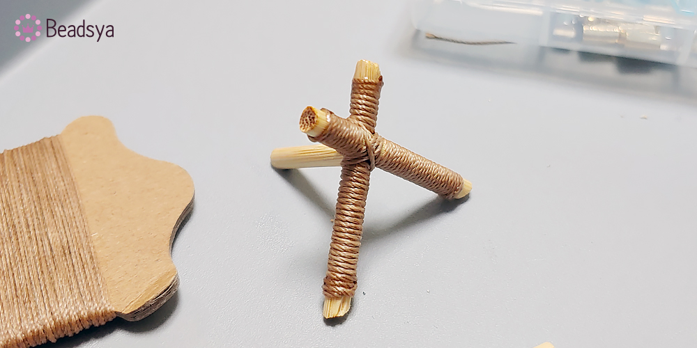 꼬치와 비슷한 두깨로 면끈을 뭉쳐 접착을 해볼께요~