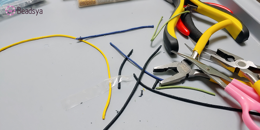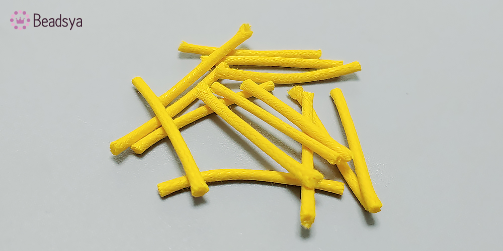 남은 노란색 면끈을 가능한 같은 크기로 잘라봤어요.