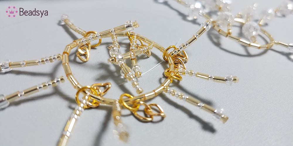 위 사진 처럼 2칸에 하나씩 따로따로 비즈장식을 만들어 끼워줘야 하는데요.
