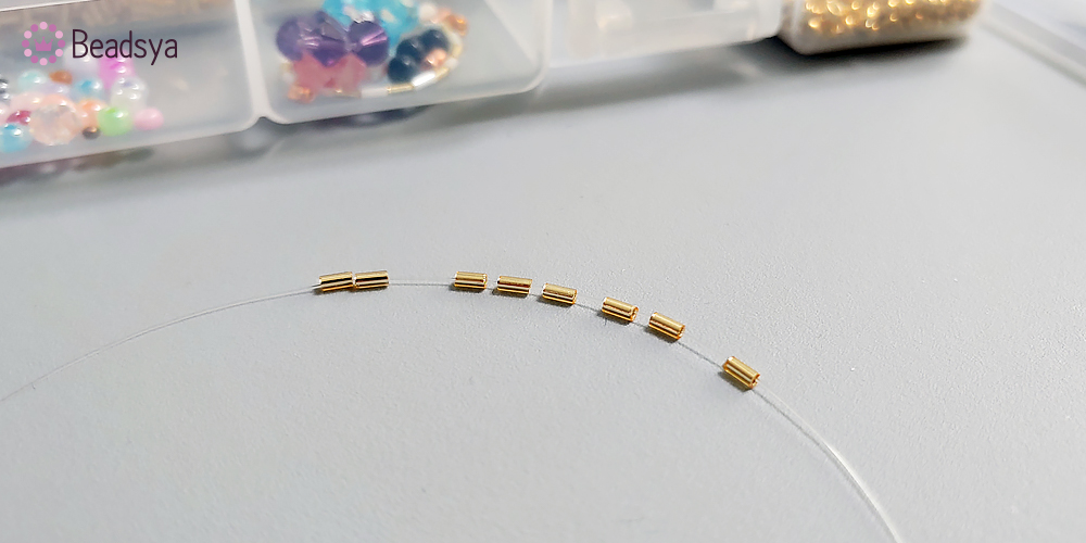 장식에 사용된 비즈의 순서는 1.5mm 시드비즈 > 3mm 시드비즈 > 1.5mm 빨대비즈 > 1.5mm 시드비즈 > 1.5mm 빨대비즈 > 1.5mm 시드비즈 6개 순으로 꿰주시면 될것같아요... 개인 취향에 따라 달라도 되구요 ^^;