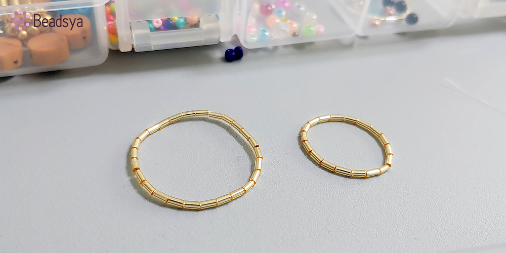 원형으로 꿰서 묶어주시면 되는데 왼쪽은 26개 > 오른쪽은 18개로 서로 다른 크기로 만들었습니다.