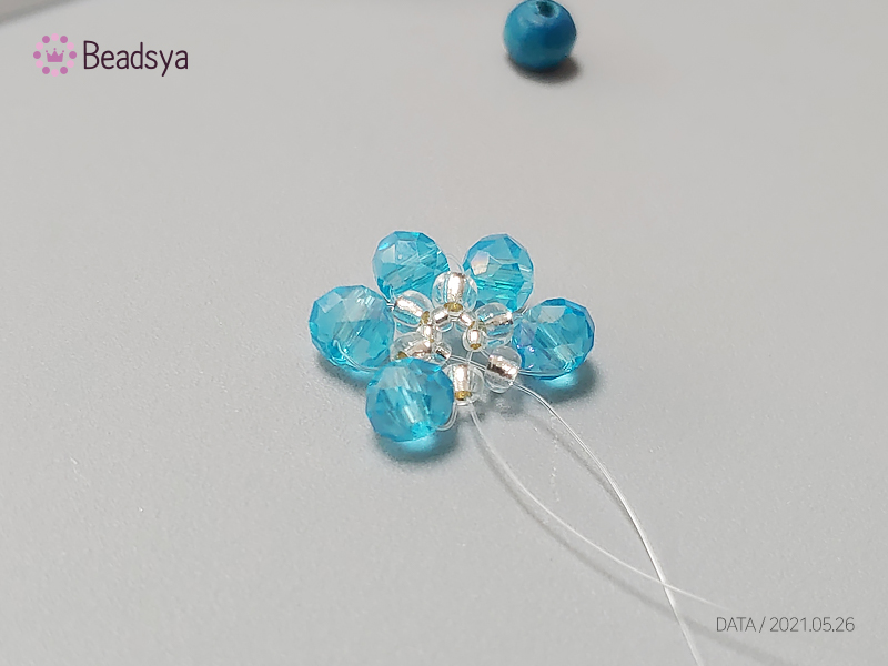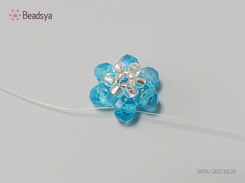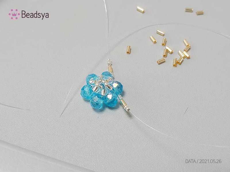 처음 시작은 1.5mm 시드비즈 > 3mm 시드비즈 > 크리스탈 론델비즈 까지 꿰주신 다음에 처음에 들어간 1.5mm 시드비즈로 교차해서 들어가세요.